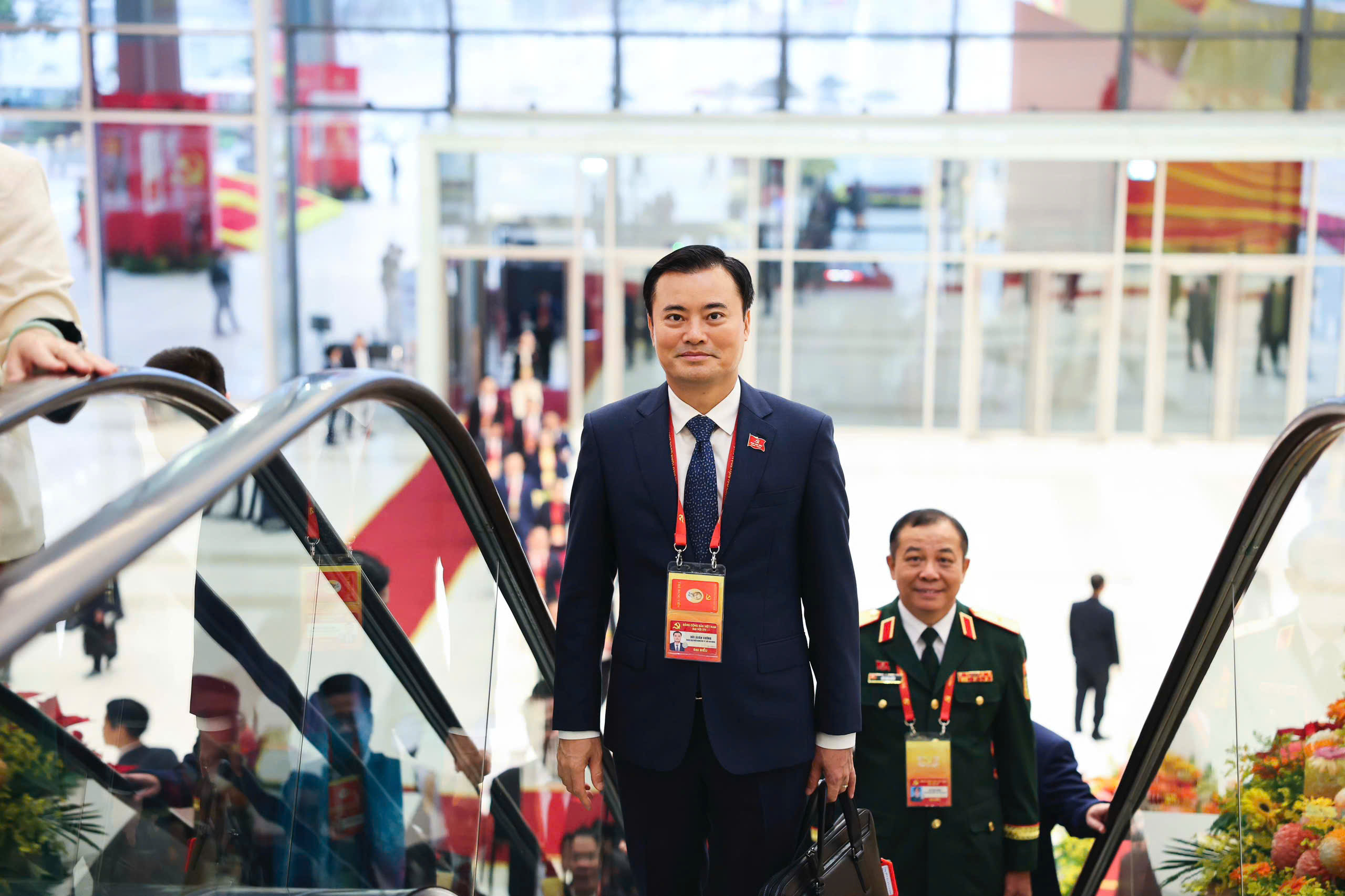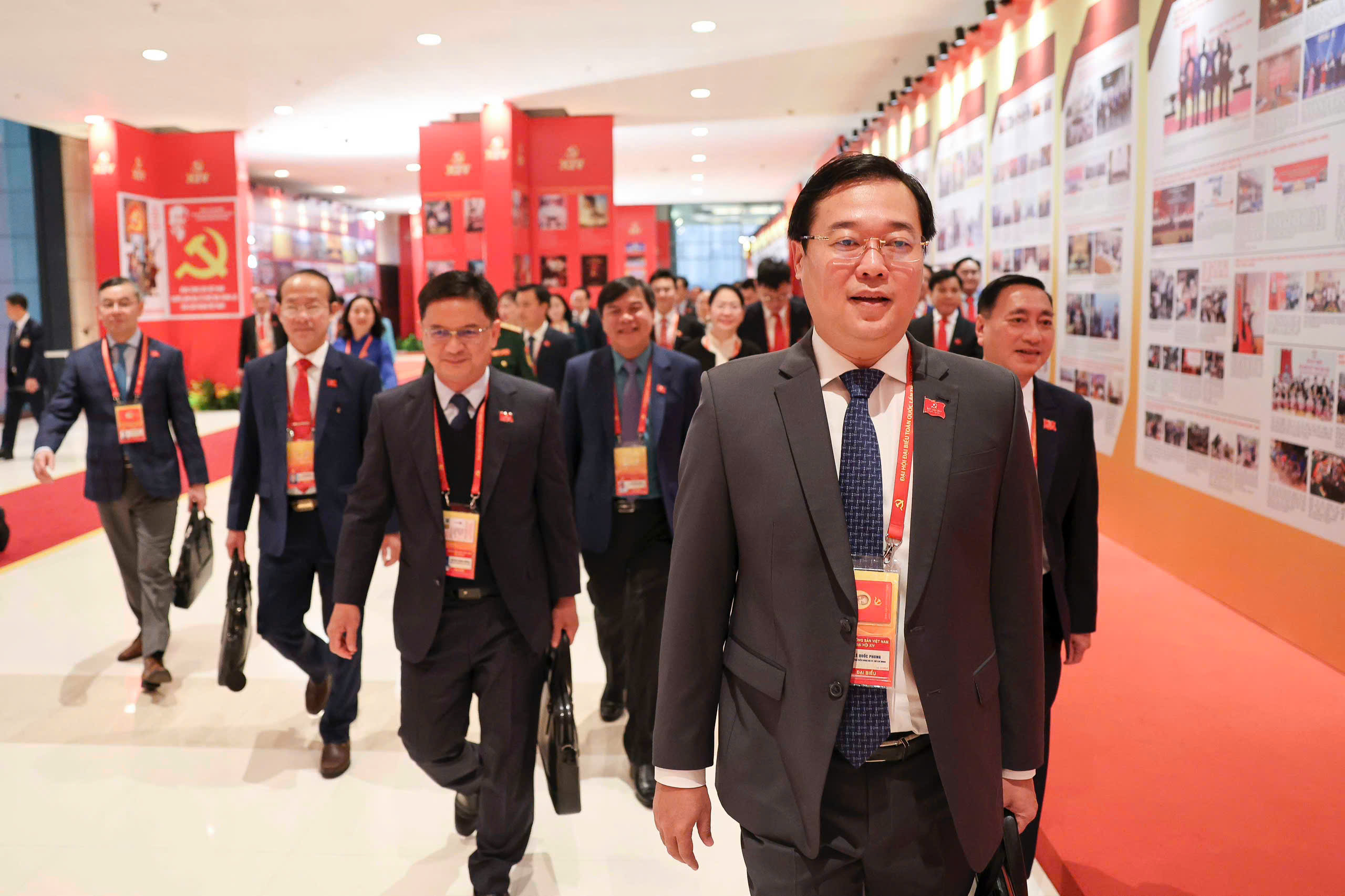 Ông Lê Quốc Phong – phó bí thư thường trực Thành ủy TP.HCM và các đại biểu đoàn Đảng bộ TP.HCM đến dự phiên thảo luận sáng 21-1 – Ảnh: NGUYỄN KHÁNH
