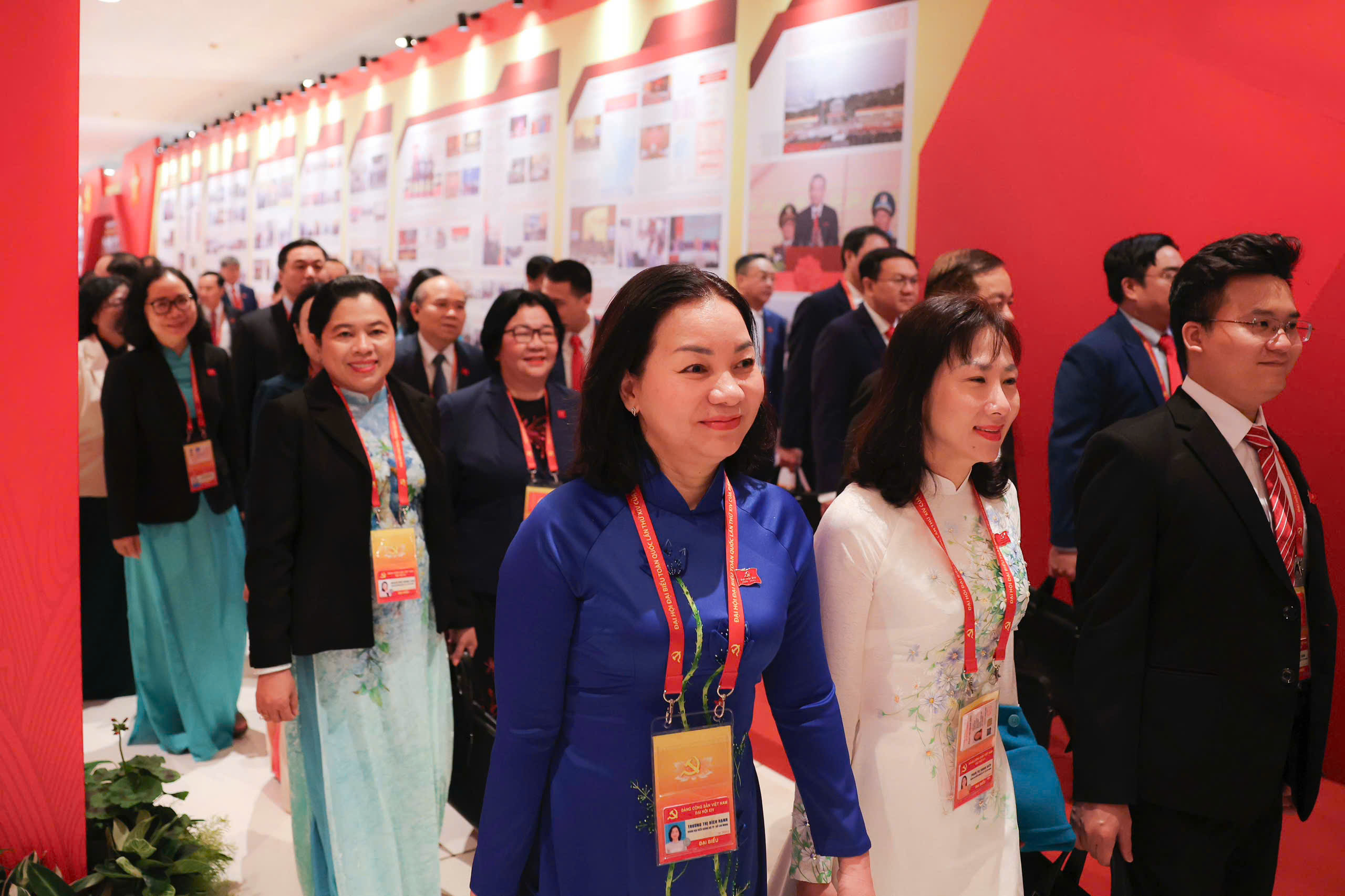 Bà Trương Thị Bích Hạnh – Ủy viên ban thường vụ Thành ủy, phó chủ tịch thường trực Ủy ban Mặt trận Tổ quốc Việt Nam TP.HCM, và các đại biểu đoàn Đảng bộ TP.HCM đến dự phiên thảo luận sáng 21-1 – Ảnh: NGUYỄN KHÁNH