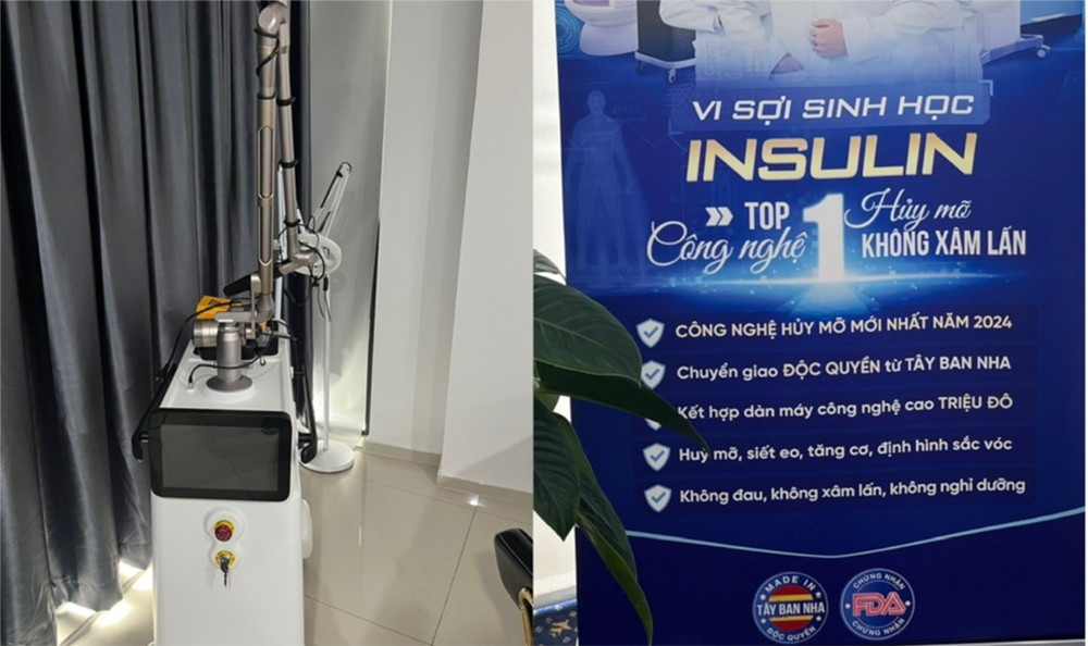Sở Y tế còn ghi nhận trên trang mạng xã hội Facebook còn có các poster, standee có nội dung vi sợi sinh học Insulin – top 1 công nghệ hủy mỡ không xâm lấn – chuyển giao độc quyền từ Tây ban Nha…