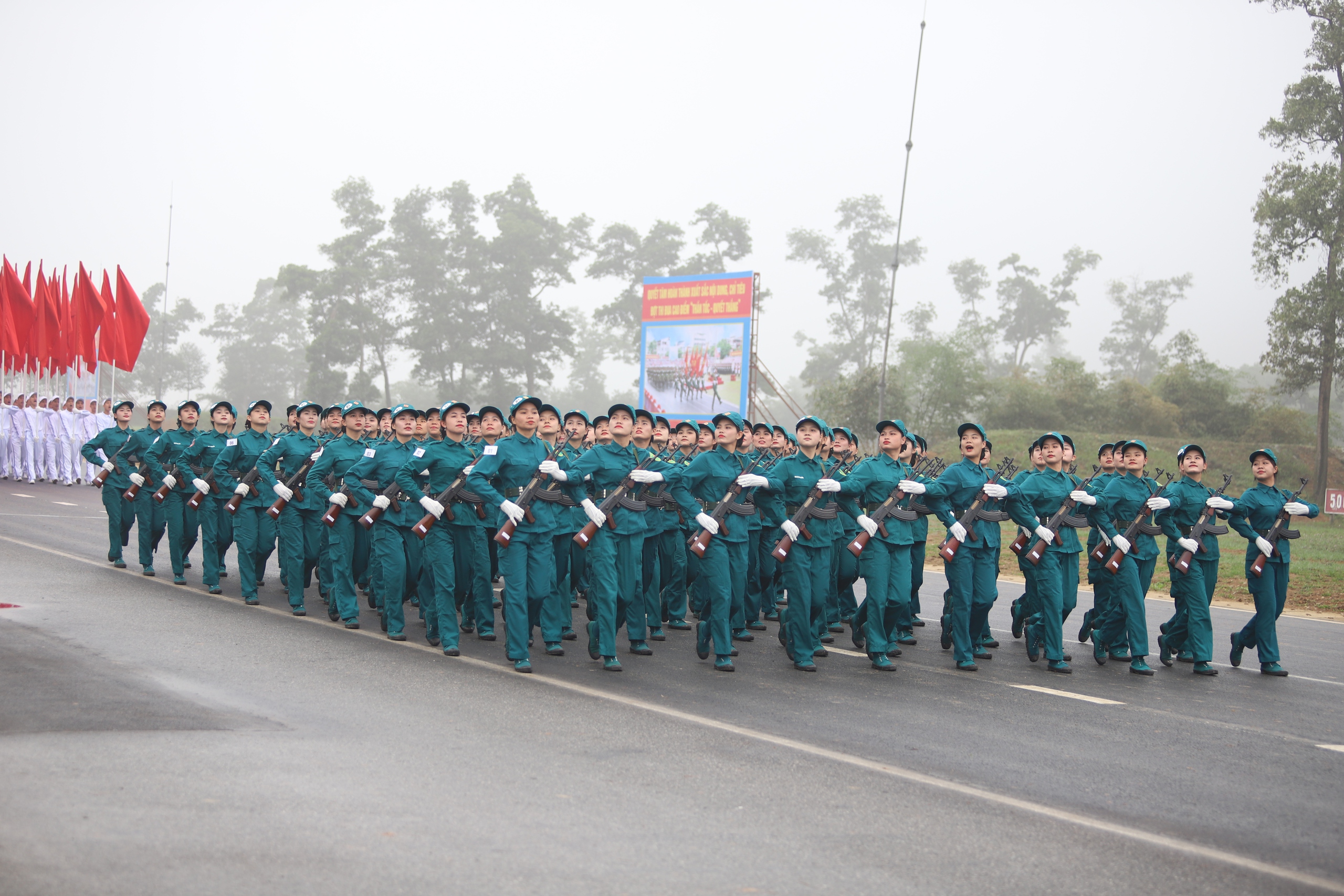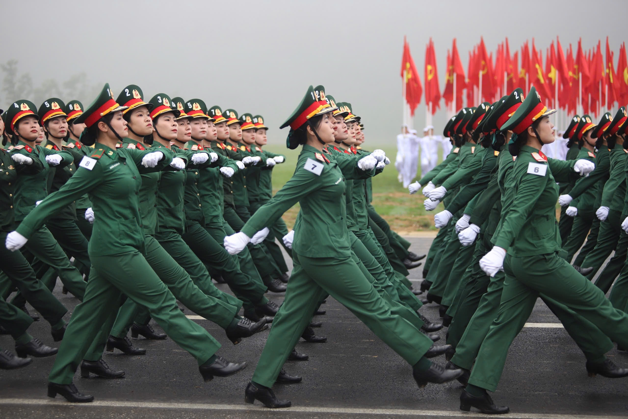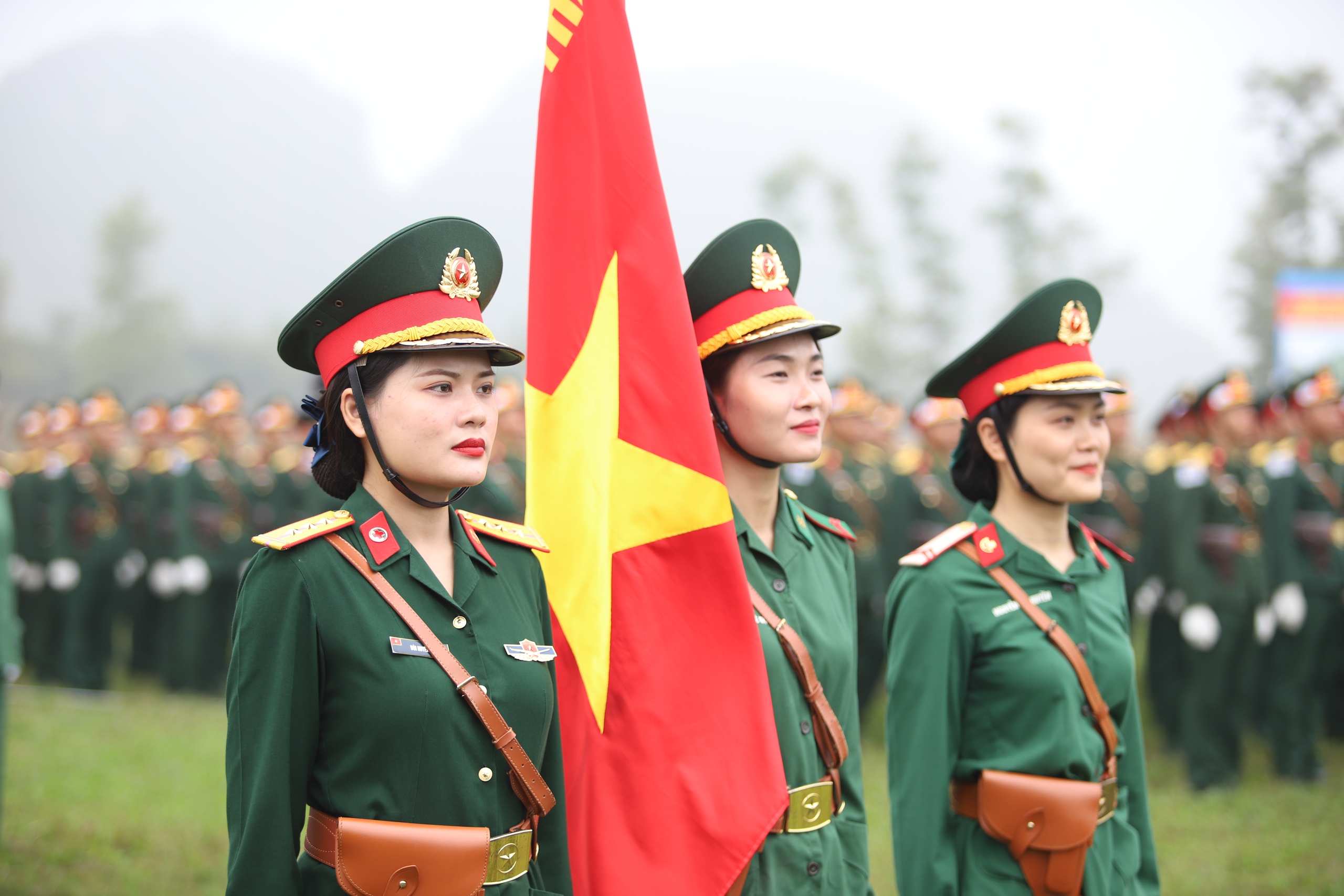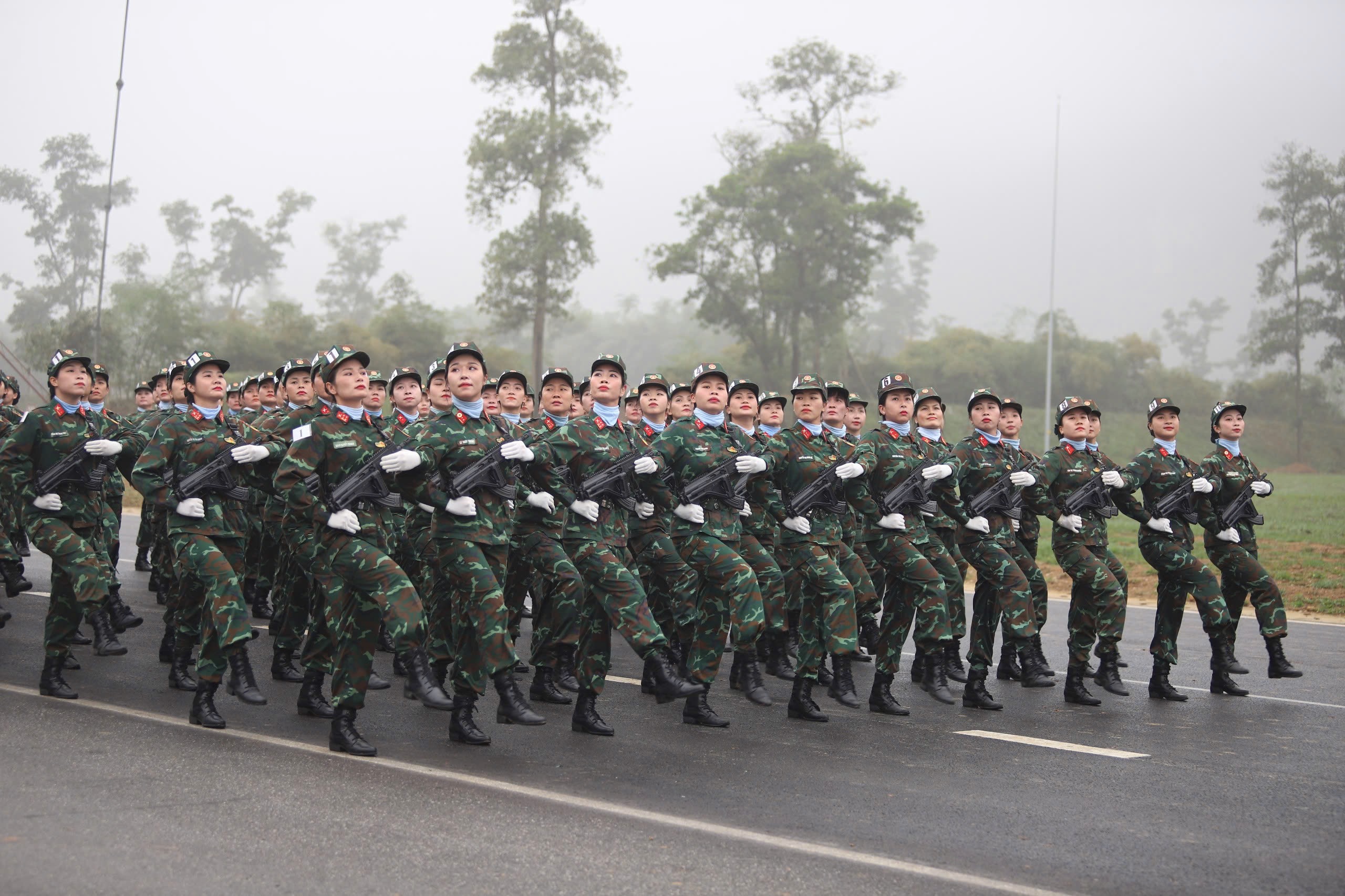Trong đội hình diễu binh, diễu hành có nhiều “bóng hồng” xinh đẹp