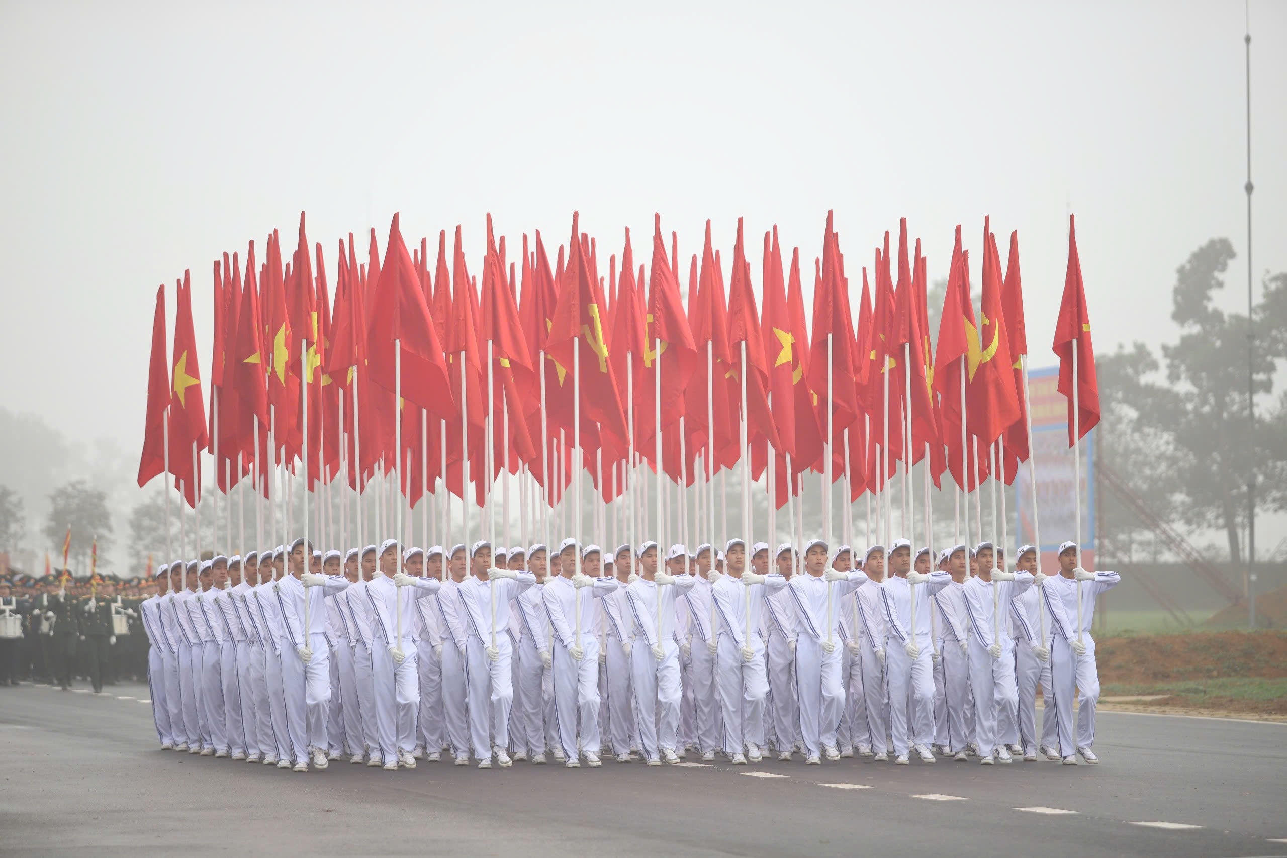 Khối cờ Đảng, cờ Tổ quốc hợp luyện tiến vào lễ đài
