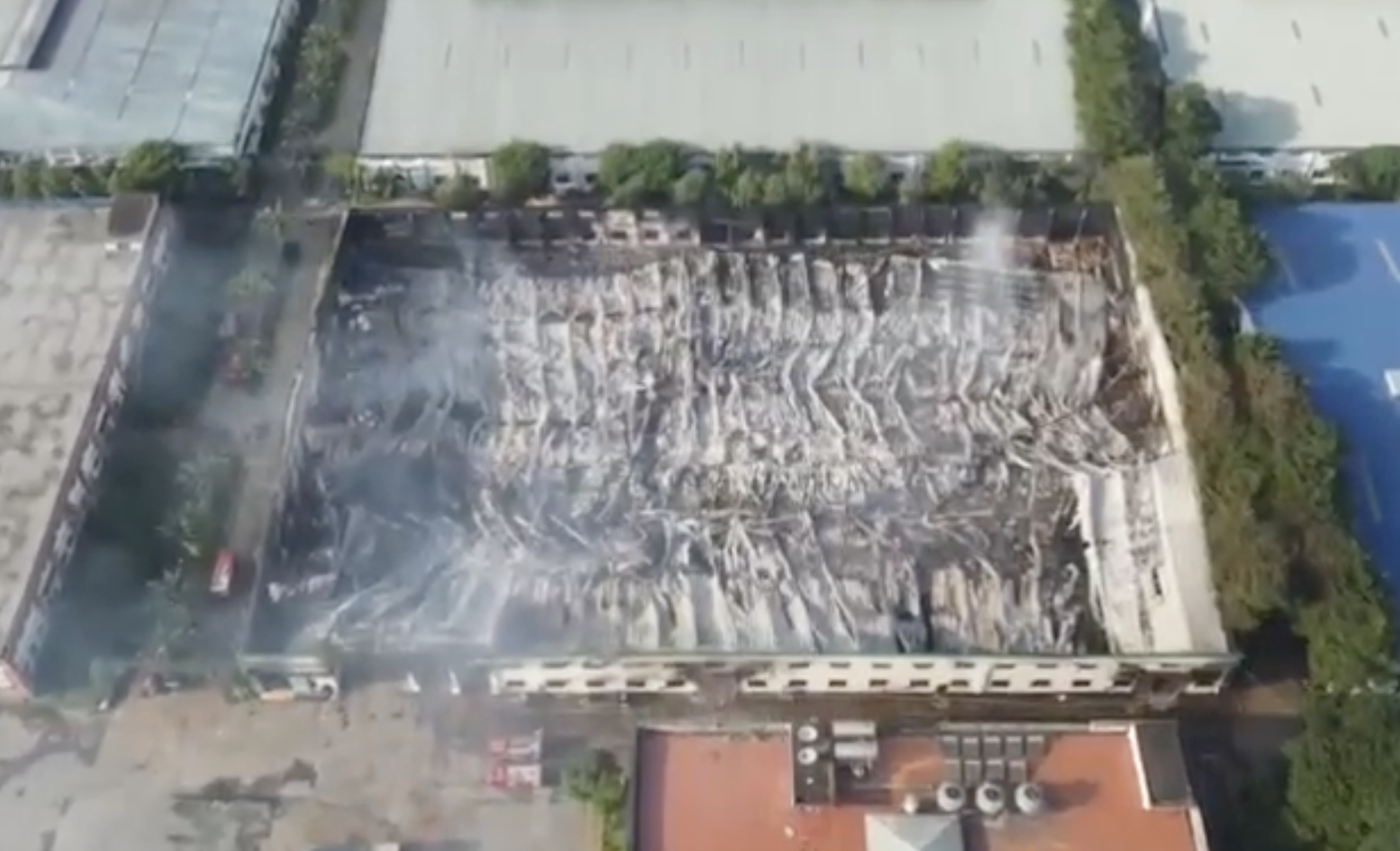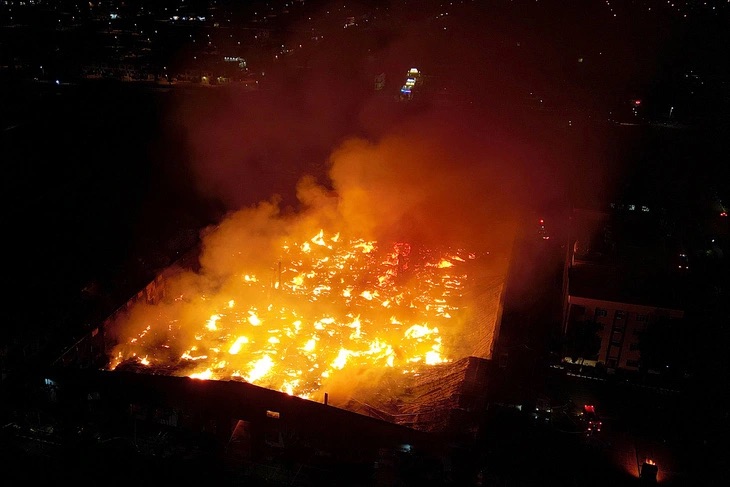 Toàn bộ khu thành phẩm với nhiều hàng hóa bên trong cháy rụi